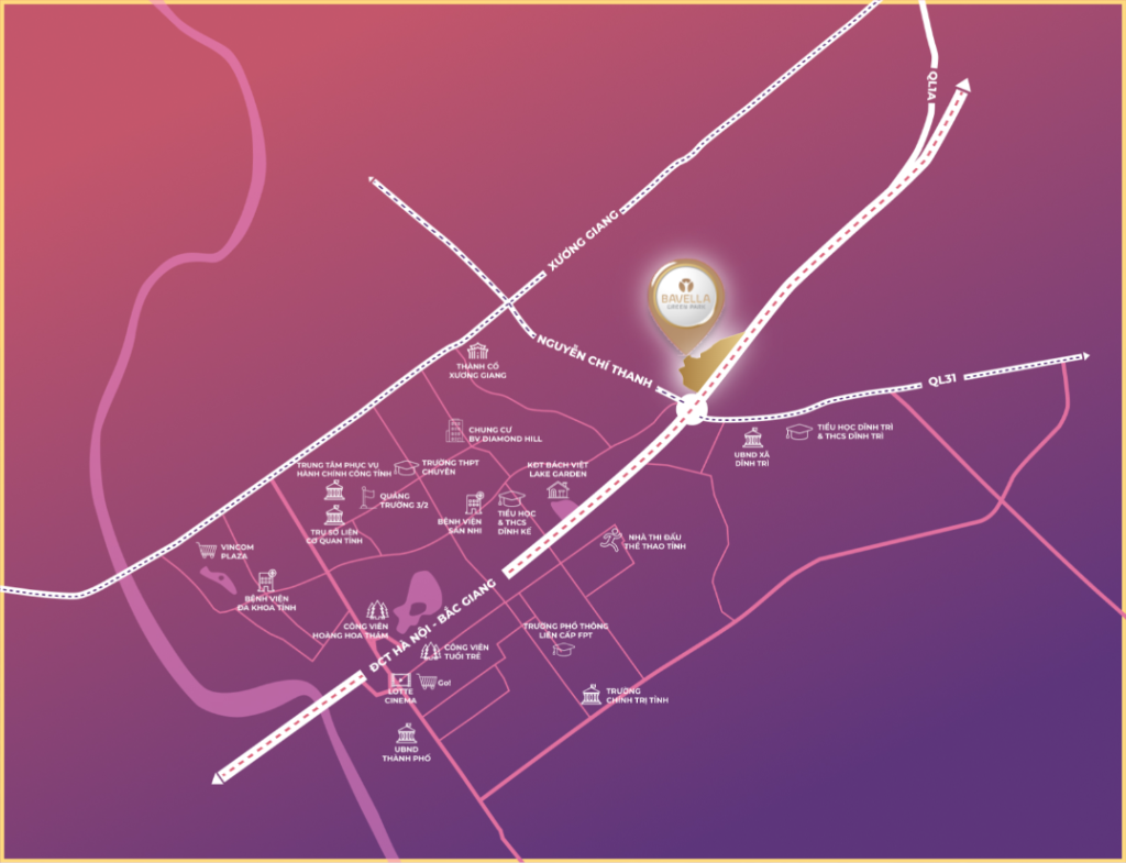 Nằm tại đường Nguyễn Chí Thanh, phường Dĩnh Trì, thành phố Bắc Giang, Bavella Green Park không chỉ là một khu đô thị, mà còn là biểu tượng của sự phát triển đô thị bền vững và tiện nghi. Với thiết kế đồng bộ và chất lượng cao, dự án này hứa hẹn sẽ trở thành một trong những khu đô thị đáng sống nhất trong thành phố.